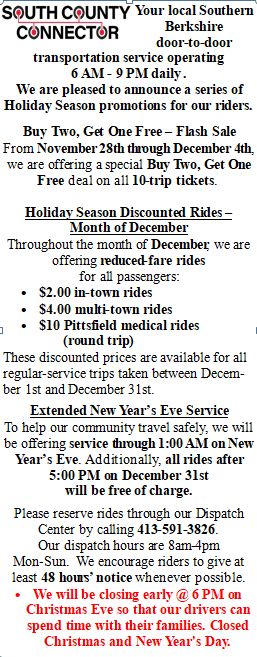 For more information about these service changes, please call (413) 591-3826